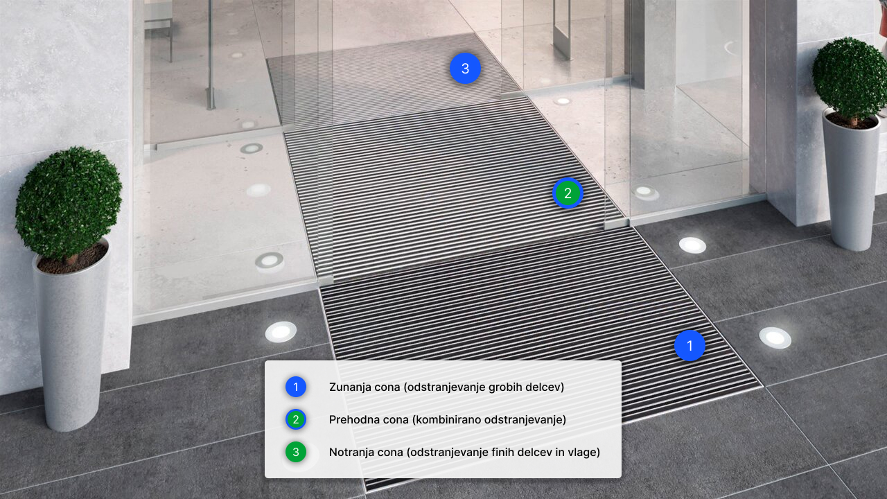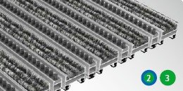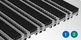 Družina predpražnikov TOP CLEAN s svojimi karakteristikami zadosti potrebam vsake vhodne cone. Predpražniki so dobavljivi v različnih višinah, z različnimi distančniki ter z različnimi izvedbami vložkov, izbirate lahko med standardnimi in specialnimi barvami. Možni so izrezi, diagonale in radiji, na povpraševanje so lahko profili v katerikoli RAL barvi.